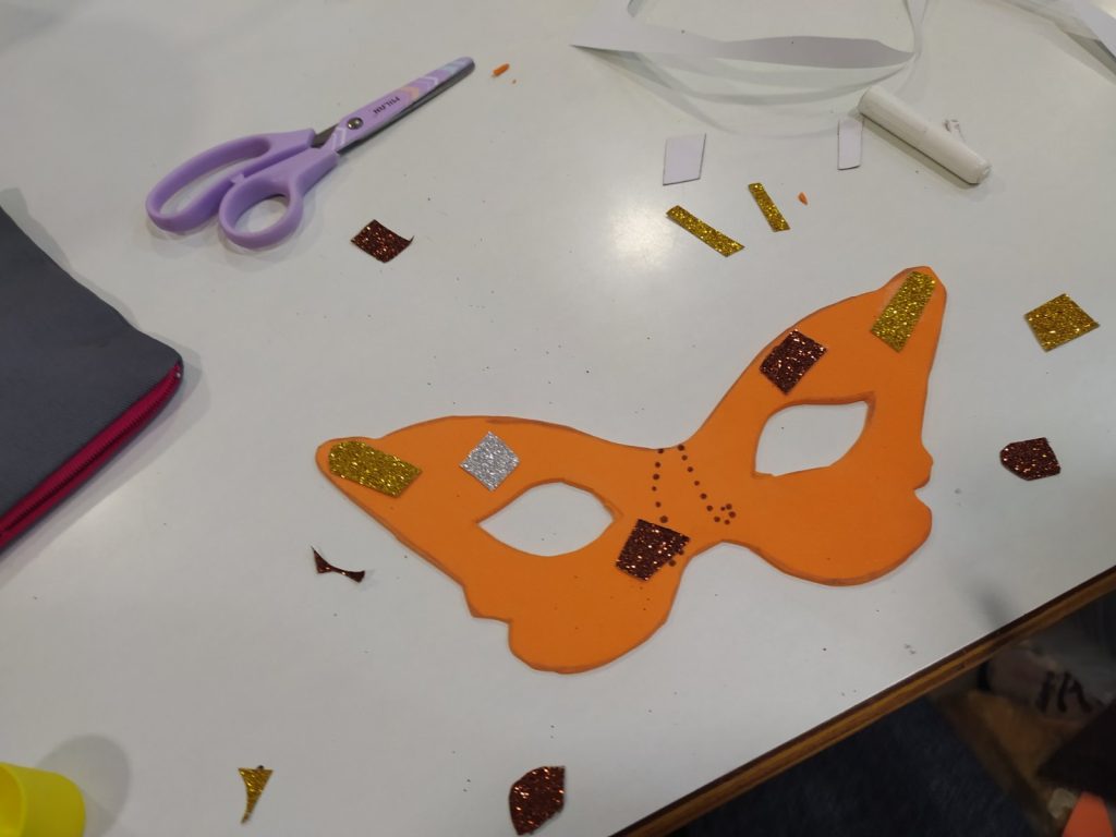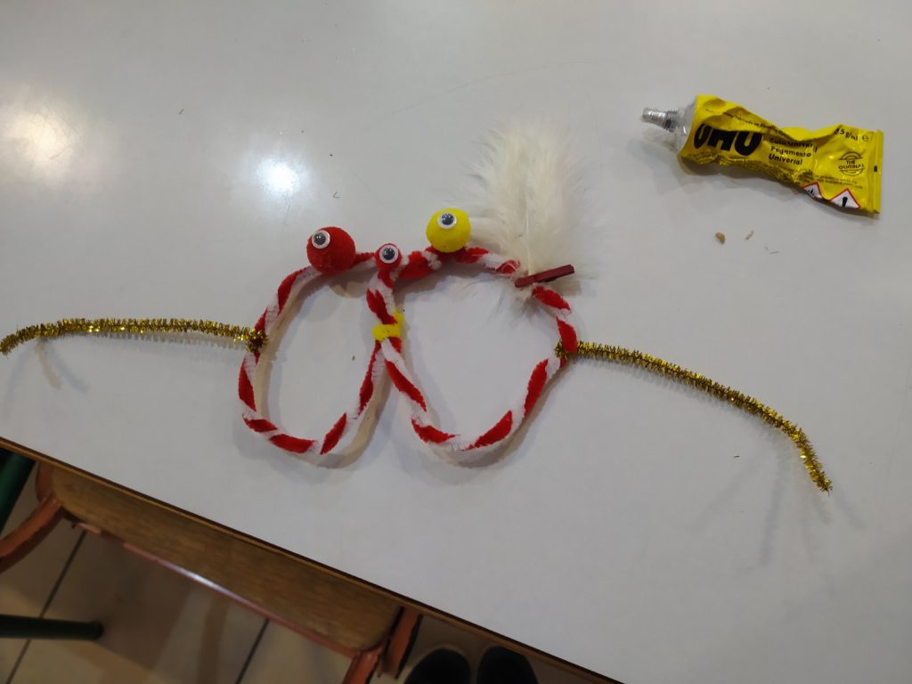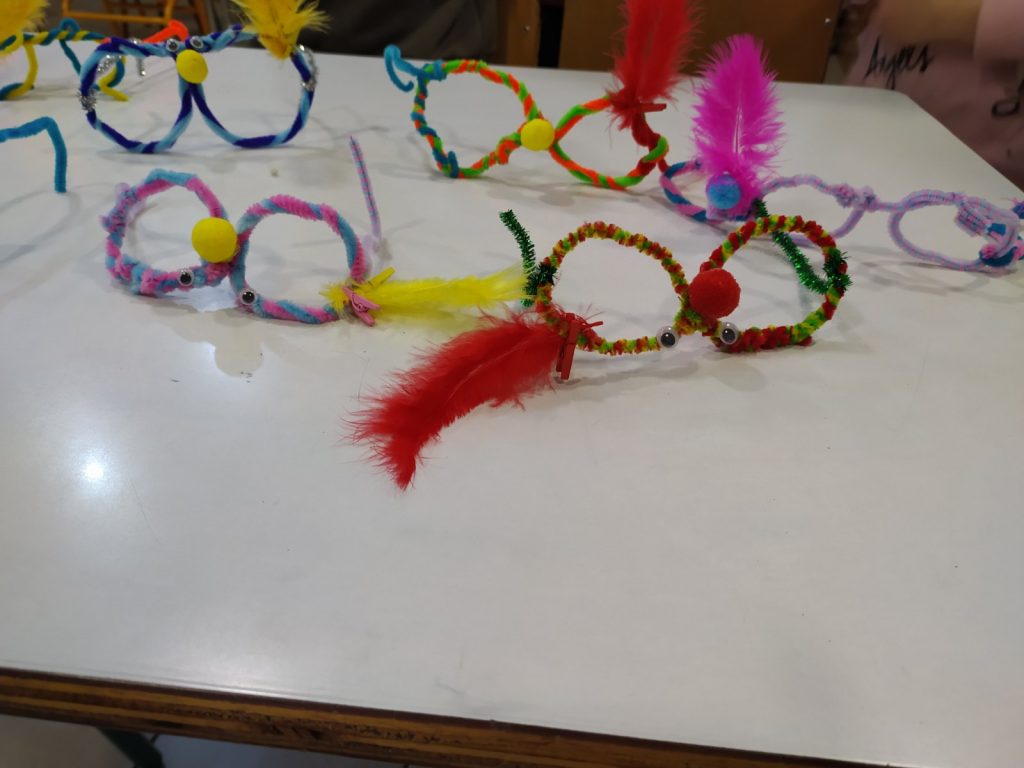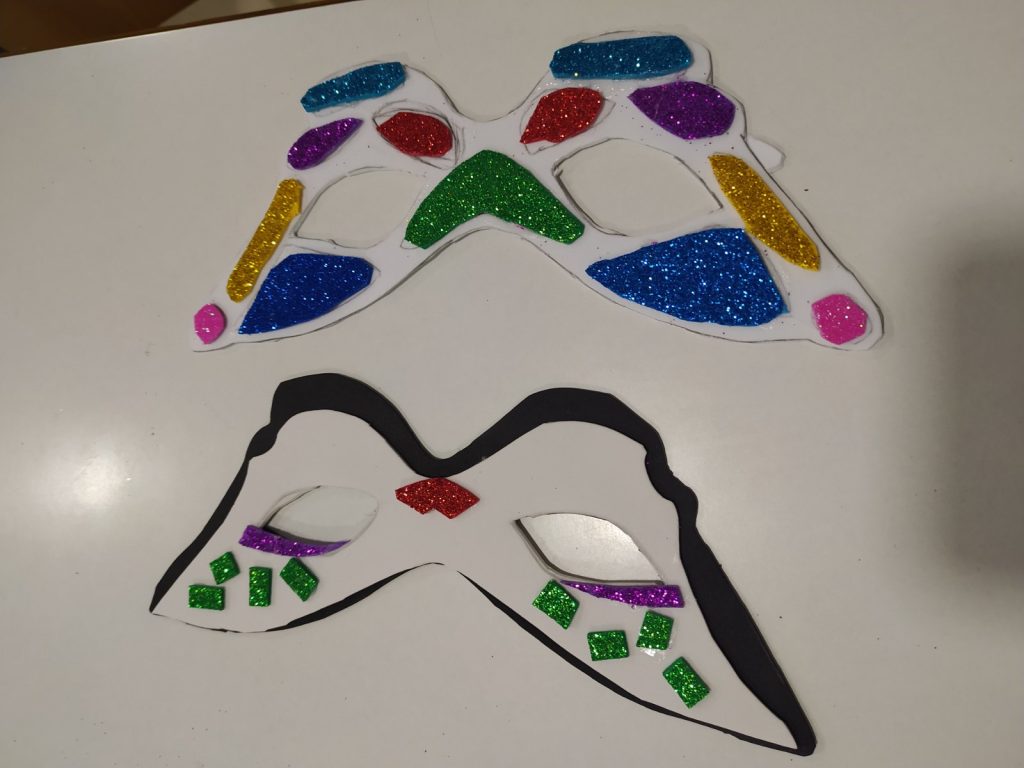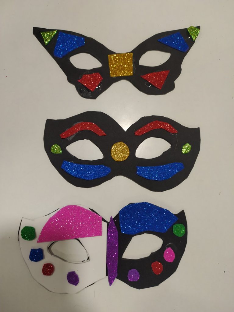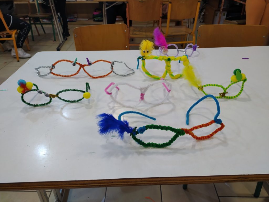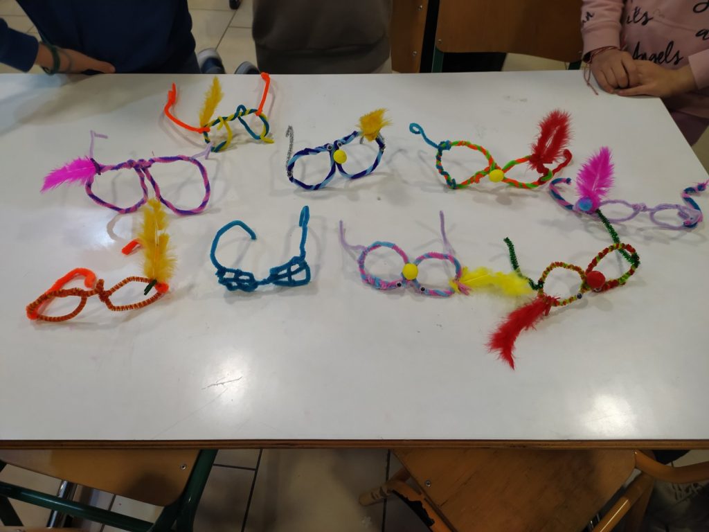 Μάσκες – γυαλιά από αφρώδες χαρτόνια, σύρμα πίπας, ματάκια, φτερά, πούπουλα, μανταλάκια, πομ πομ..!