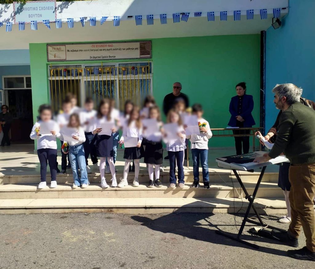 Η ΣΤ’ Τάξη του σχολείου μας παρουσίασε και φέτος μια συγκλονιστική γιορτή-αναφορά στον αγώνα των Ελλήνων για την ελευθερία, τραγούδησε την πίκρα της σκλαβιάς και με ένα υπέροχο χορευτικό -γροθιά στο στομαχι- έδειξε τον αποχωρισμό της μάνας από το παιδί της…