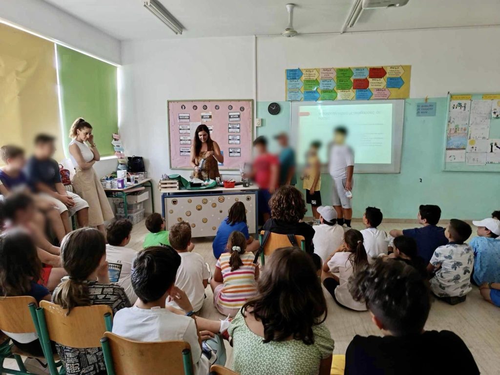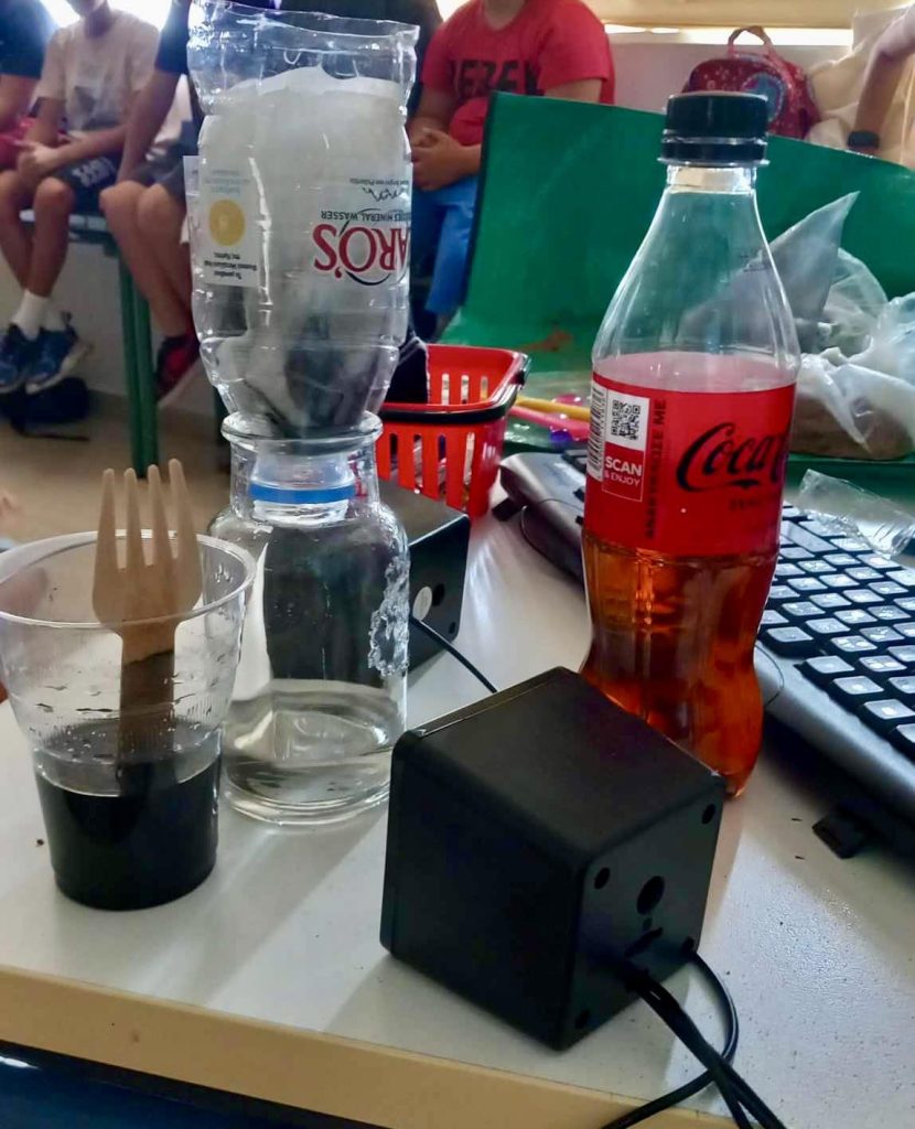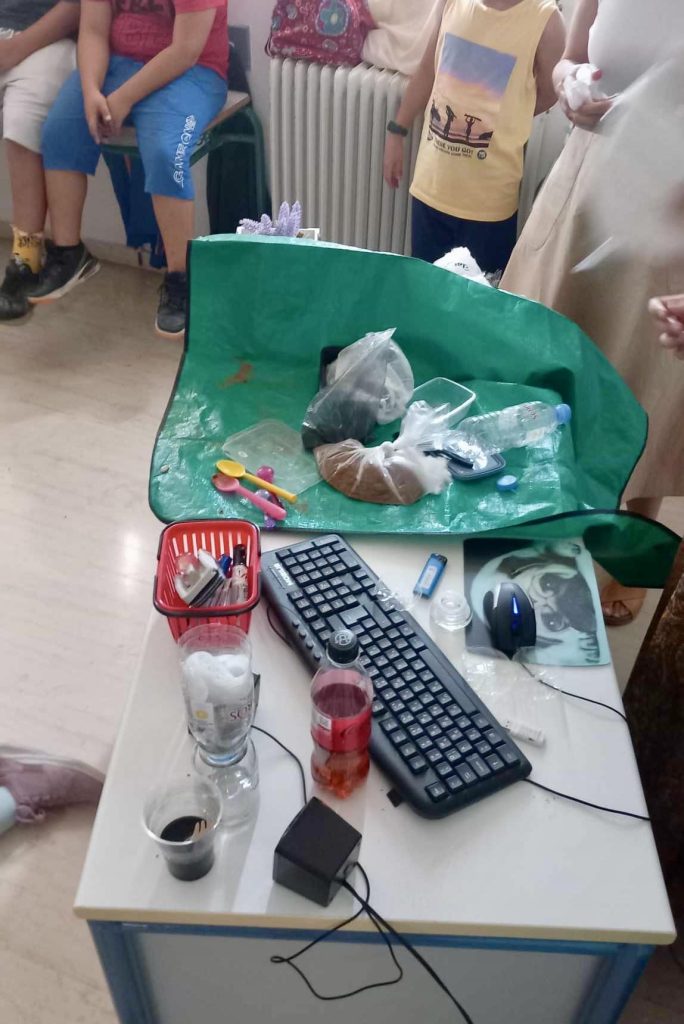 Στα πλαίσια του εργαστηρίου δεξιοτητων επισκέφτηκε το 2ο Δημοτικό Σχολείο Βουτών, η κα Ειρήνη Κοσμαδάκη, χημικός και έδειξε στα παιδιά τη δημιουργία -με απλά υλικά- ενός φίλτρου νερου, ενώ αποχρωμάτισαν και ένα κόκκινο κρασί.