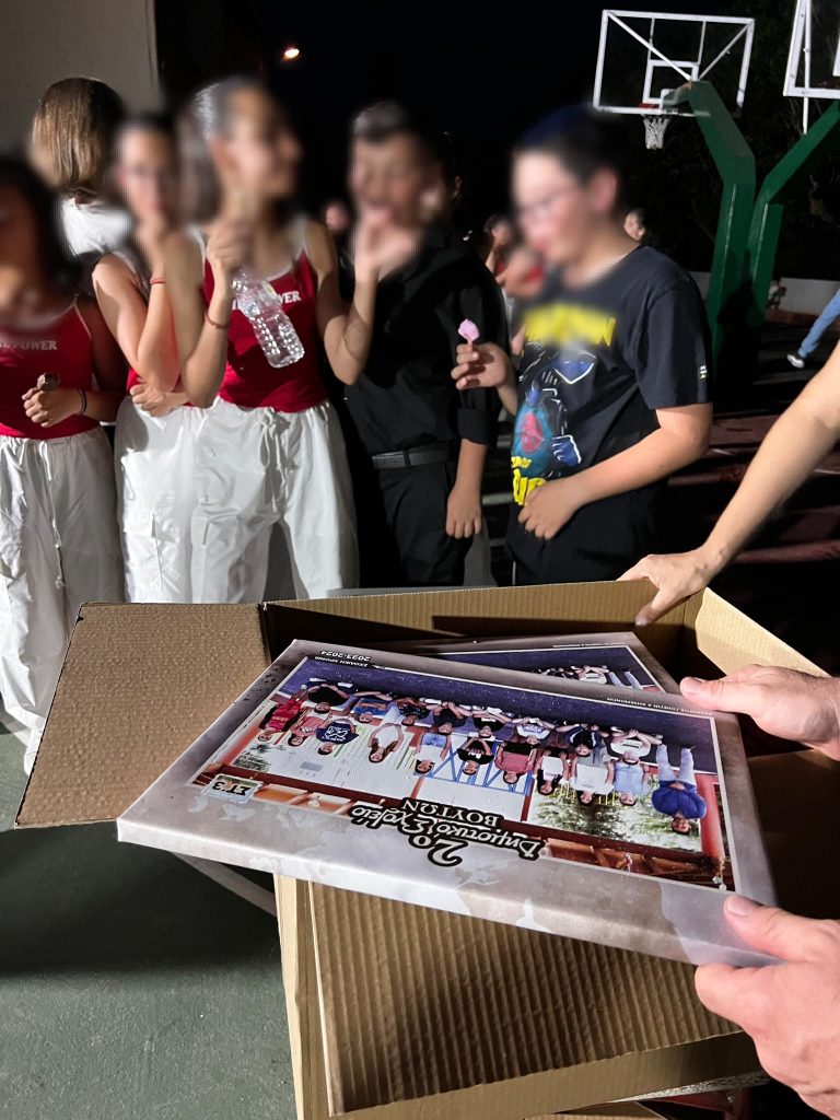 Στο τέλος, ο Σύλλογος Γονέων και Κηδεμόνων δώρισε στους απόφοιτους του Δημοτικού, τον καθιερωμένο καμβά με την αναμνηστική φωτογραφία του κάθε τμήματος.