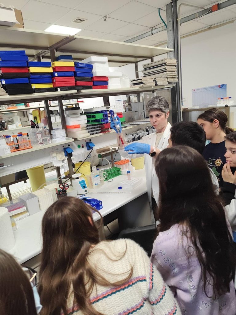 👉Συνέχισαν με επίσκεψη στα εκπαιδευτικά εργαστηρια Ιστολογίας όπου είχαν την ευκαιρία να δουν στο μικροσκόπιο τομές από διαφορετικούς ανθρώπινους ιστούς όπως μύες, πνεύμονες κ.α.