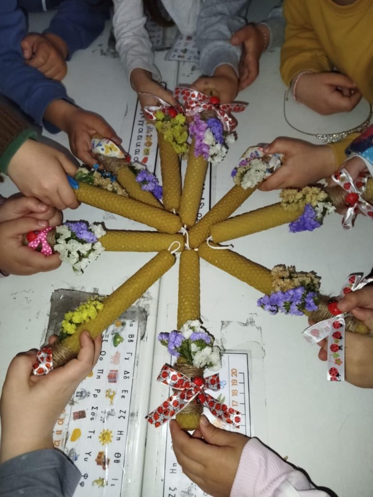 Οι μαθητές/τριες έμαθαν για τη διαδικασία παρασκευής της κηρήθρας των μελισσών, έφτιαξαν από φυσικό κερί μέλισσας χειροποίητες λαμπαδίτσες με την υποστήριξη της δασκάλας τους, και διασκέδασαν παίζοντας διαδραστικά παιχνίδια σχετικά με το Πάσχα.