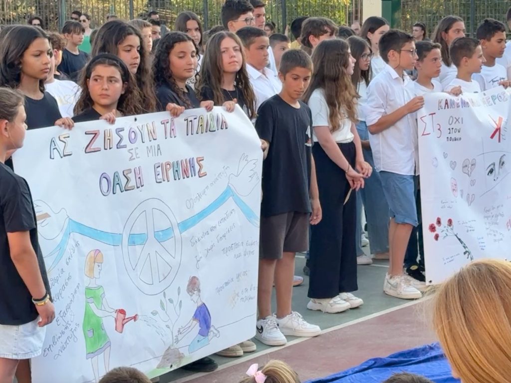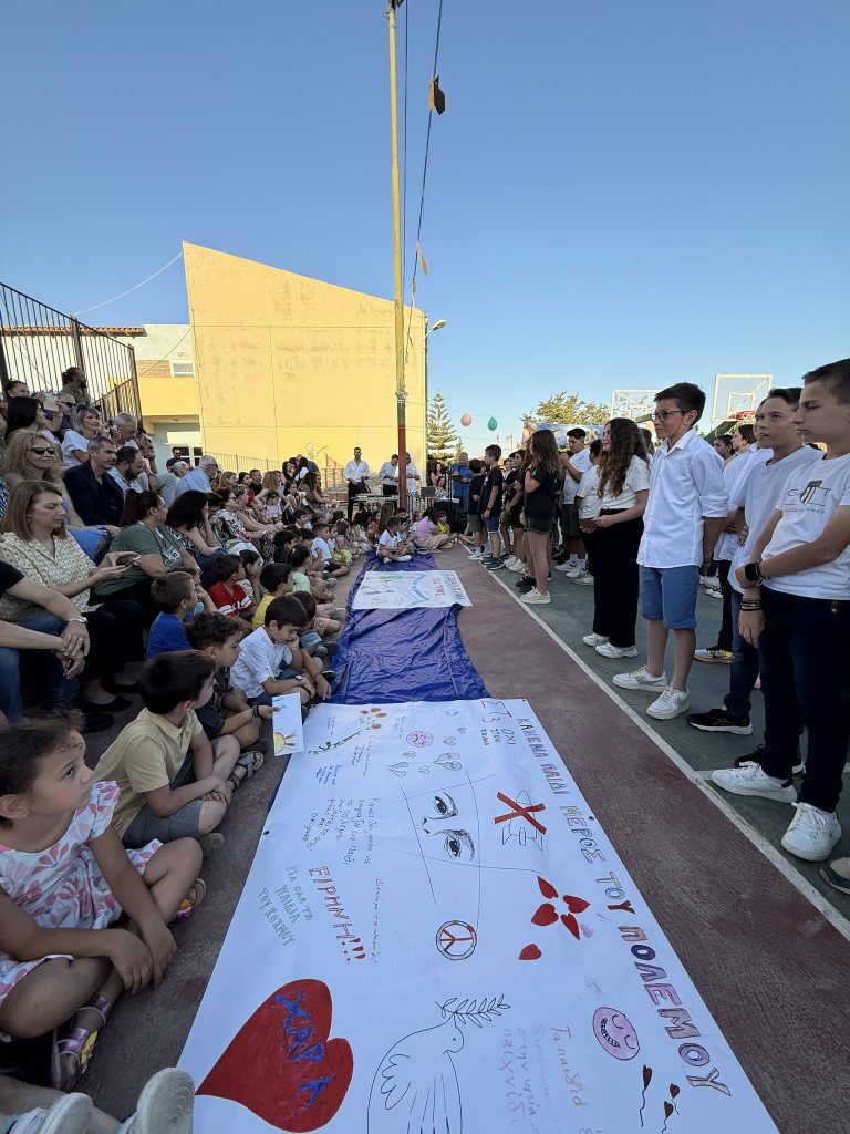 Στην έναρξη της φετινής γιορτής οι απόφοιτοι των τεσσάρων τμημάτων της ΣΤ τάξης, μαζί με τα πρωτάκια μας, αφιέρωσαν τη γιορτή σε όλα εκείνα τα παιδιά που δεν μπορούν να γιορτάσουν μαζί μας, που δεν μπορούν να παραμείνουν παιδιά, που δεν μπορούν να ακουστούν..!