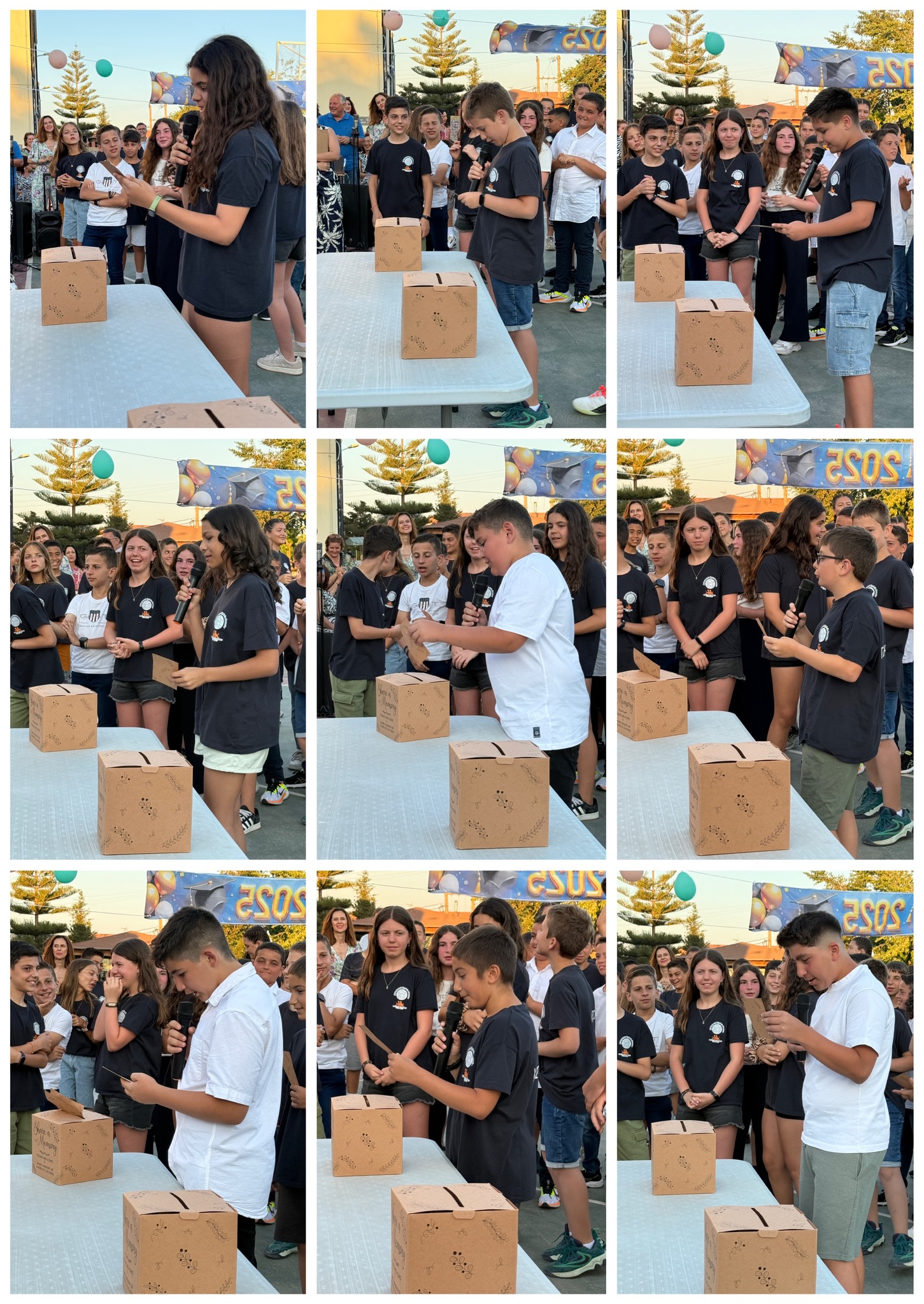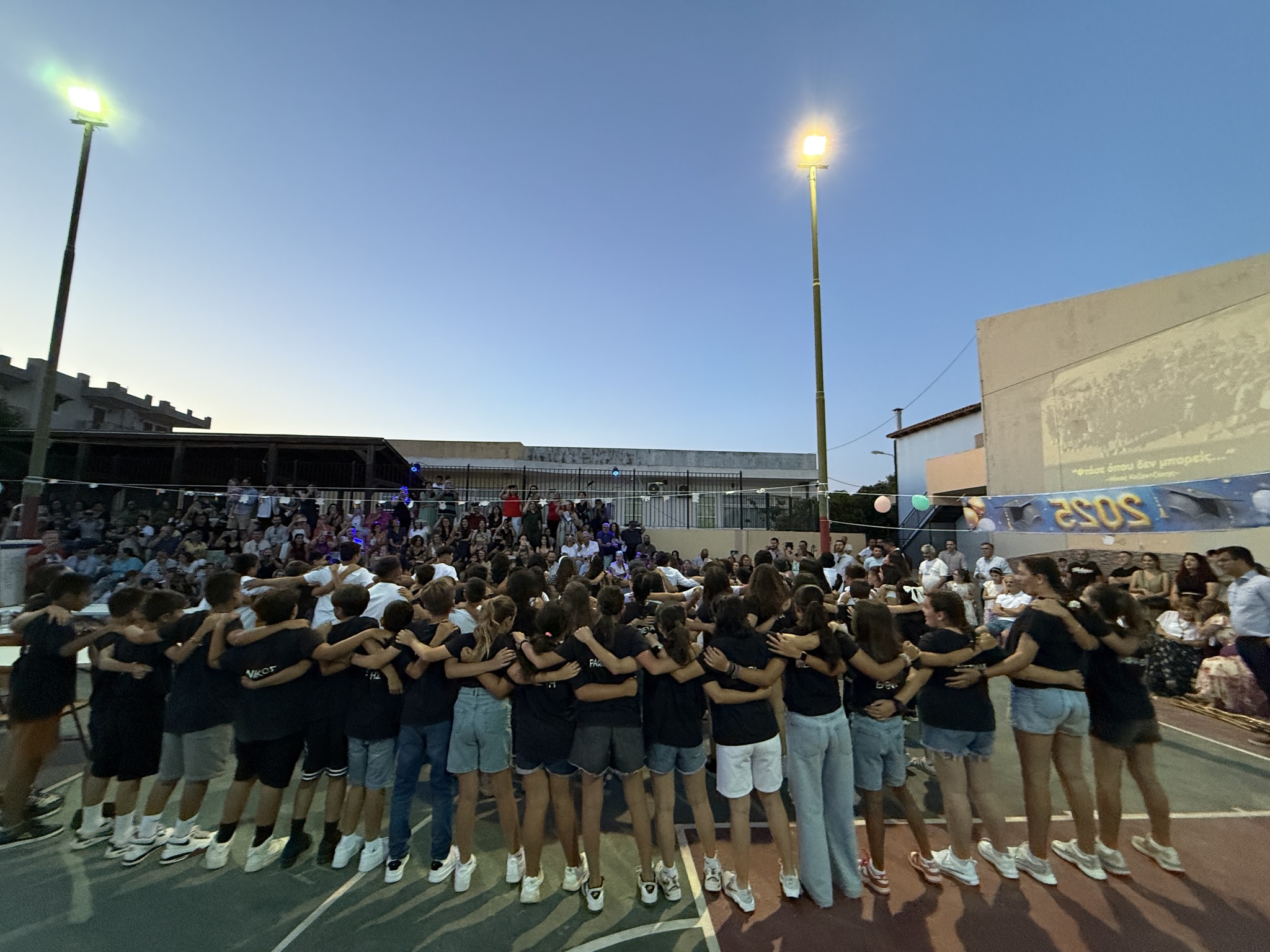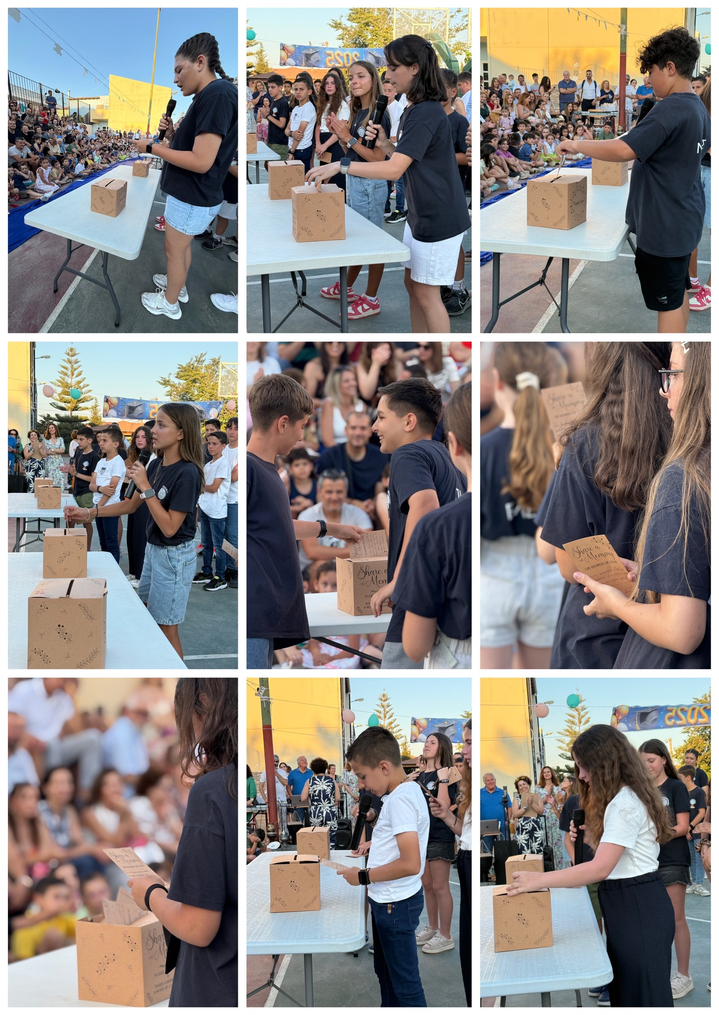 Στην έναρξη της φετινής γιορτής οι απόφοιτοι των τεσσάρων τμημάτων της ΣΤ τάξης, μαζί με τα πρωτάκια μας, αφιέρωσαν τη γιορτή σε όλα εκείνα τα παιδιά που δεν μπορούν να γιορτάσουν μαζί μας, που δεν μπορούν να παραμείνουν παιδιά, που δεν μπορούν να ακουστούν..!